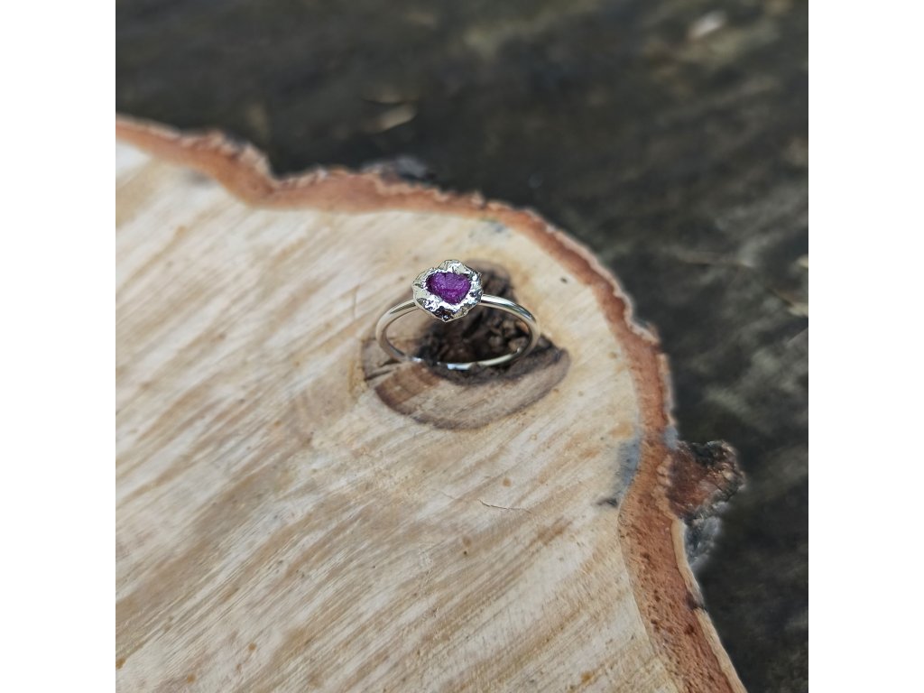 Tento prsten vznikl v našich rukách technikou vmačkávání. Surový, neopracovaný rubín je zasazený v přirozené podobě, bez zásahů do jeho struktury. Díky jedinečnosti kamene i samotné technice zpracování je tento prsten jediný na světě.