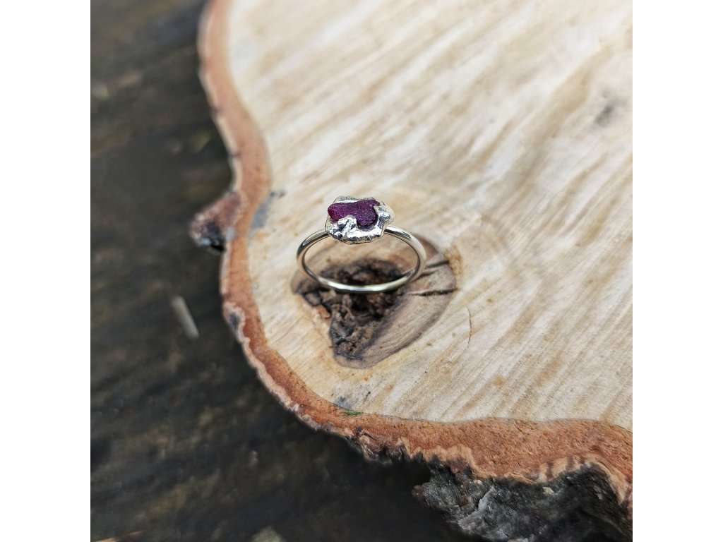 Stříbrný organický prsten s rubínem