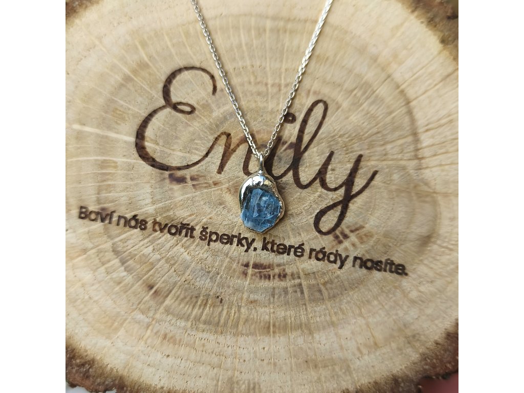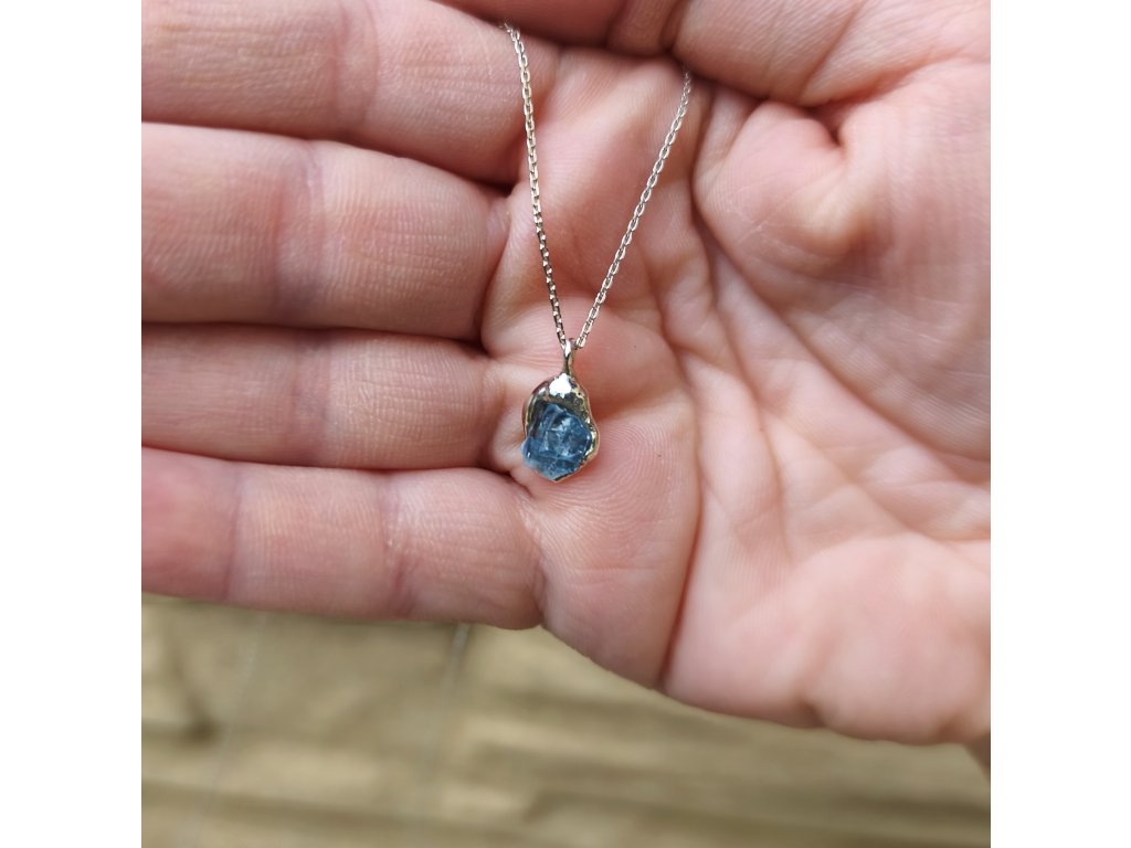 Stříbrný organický náhrdelník s akvamarínem. Kámen přírodní neopracovaný.