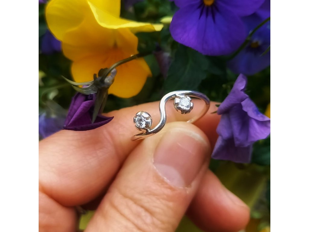 Stříbrný prsten vlnka se zirkony